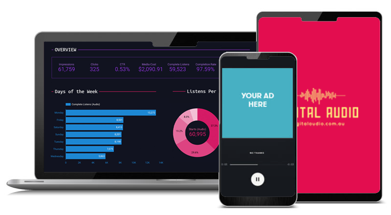 With Digital Audio campaigns you get access to your impressions, total ad plays, completed ad plays, number of companion ad clicks. We can also help you with matching back to sales results or website actions to really keep a close eye on ROI.